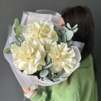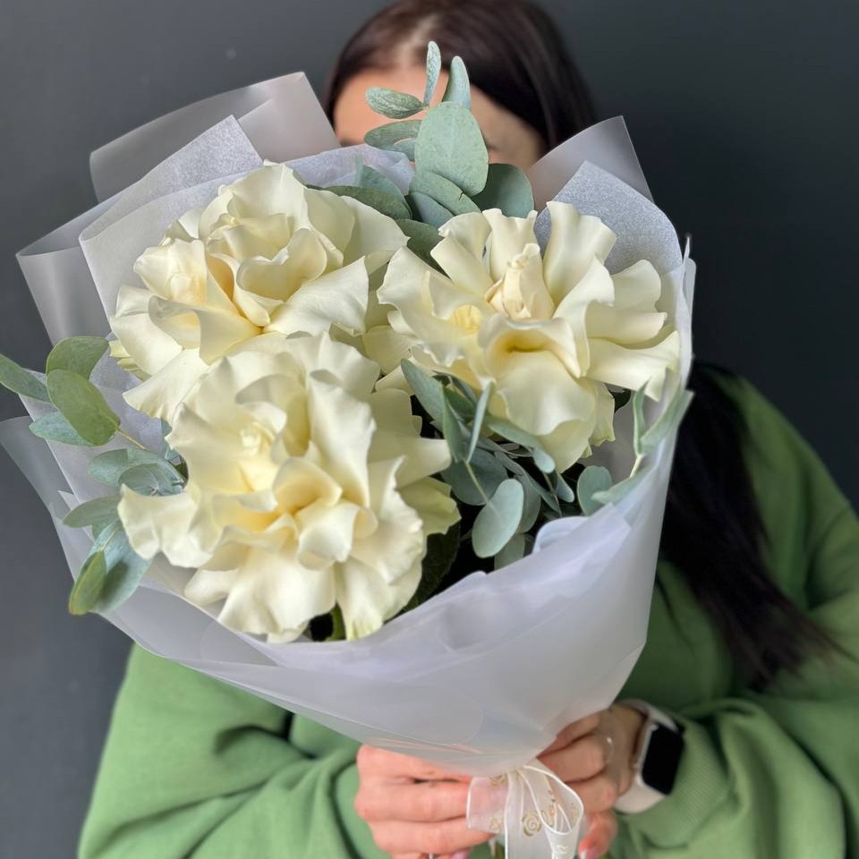 Розы сортовые Эквадор/эвкалипт/упаковка/лента