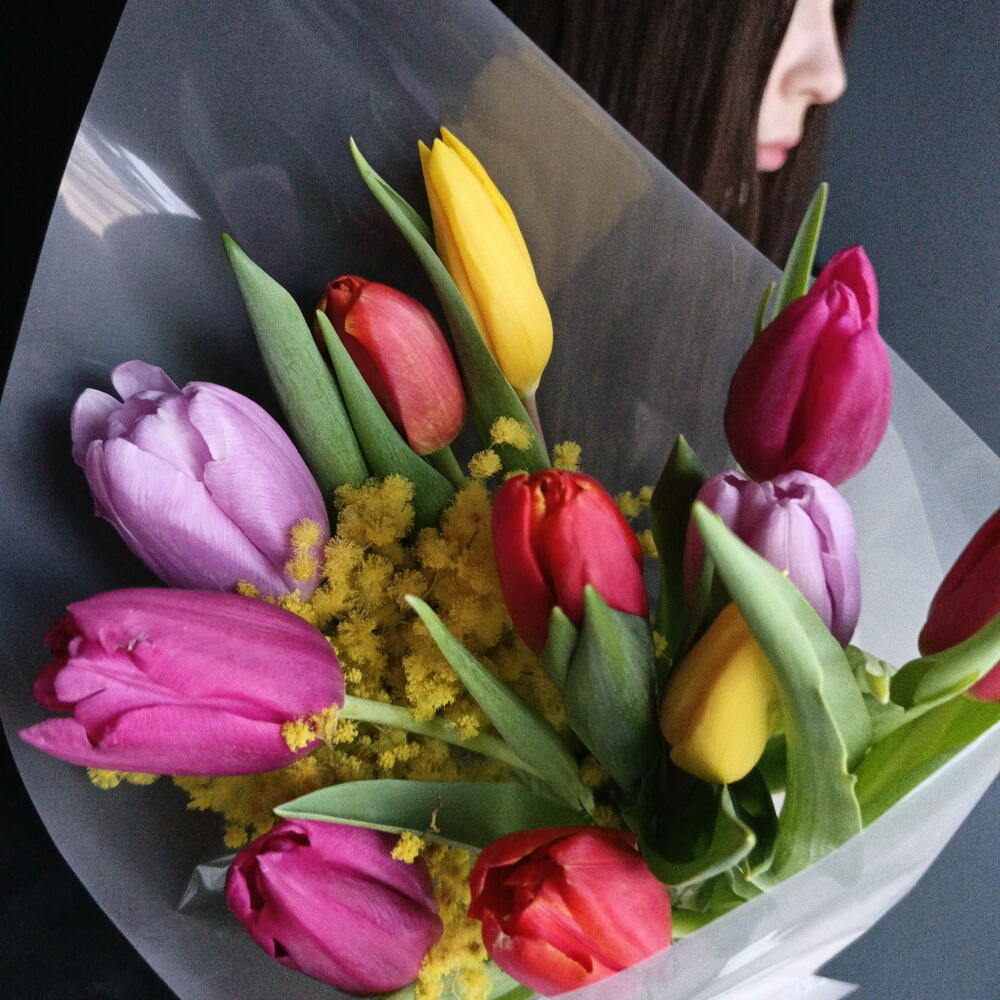 Тюльпан сортовой-11 шт./мимоза/упаковка/лента.
