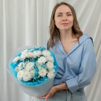Хризантемы кустовые-5 шт/гипсофила-2 шт/упаковка/лента