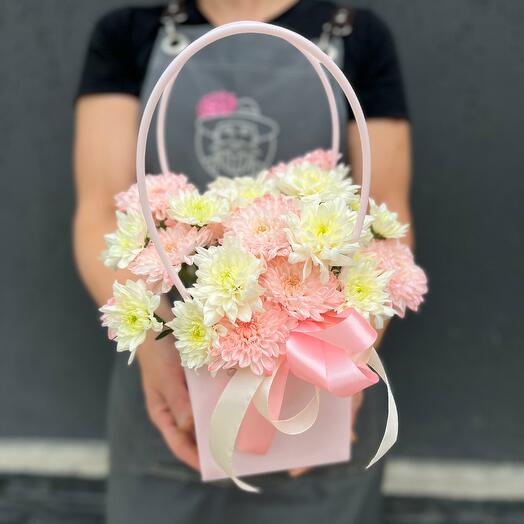 Хризантемы кустовые сортовые/пиафлор/сумочка/лента.